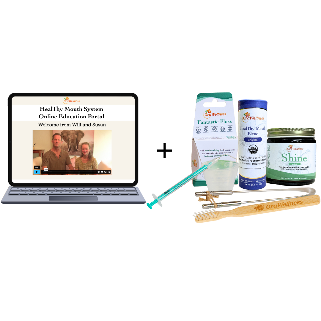 That said, the system also comes with several physical components, and you can purchase replacements as you need them (as you use them up, if you lose them, etc.) at a discount through your HealThy Mouth System online portal membership page.