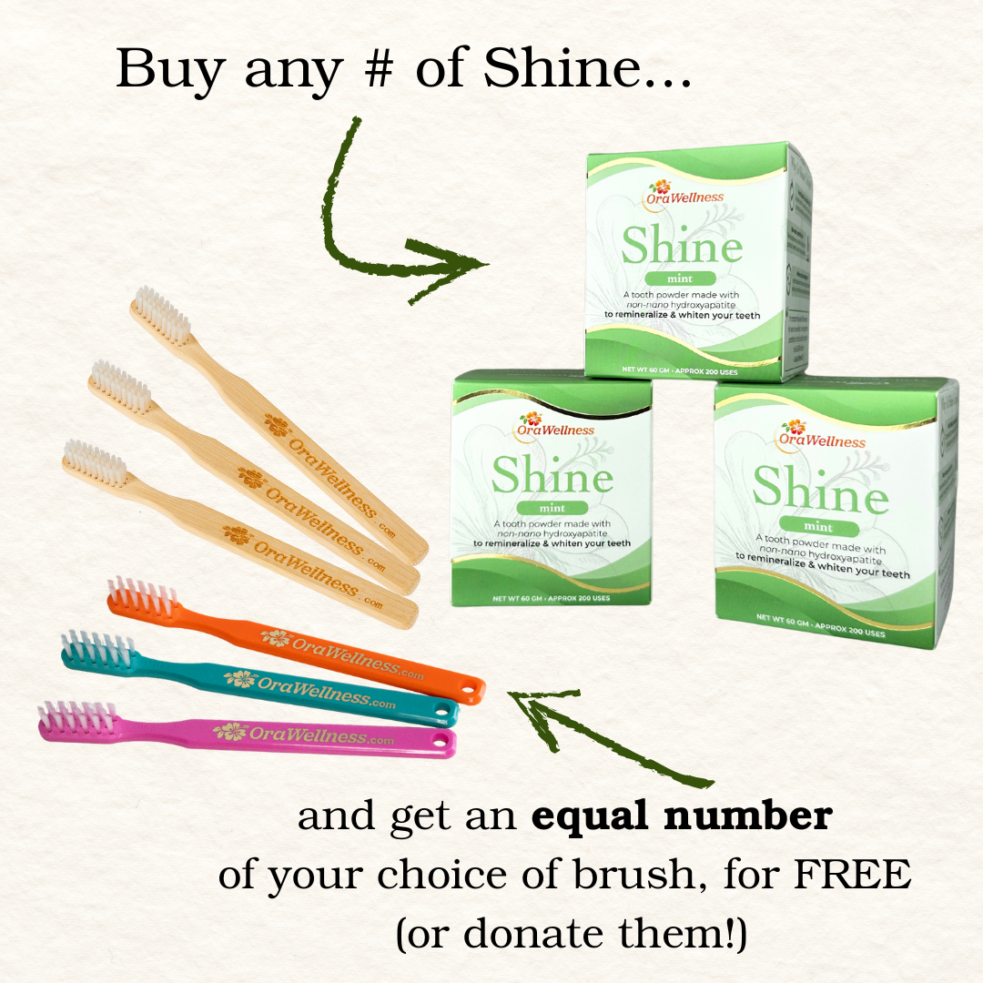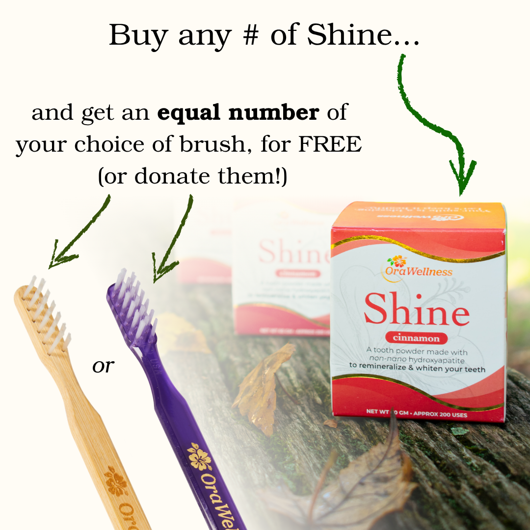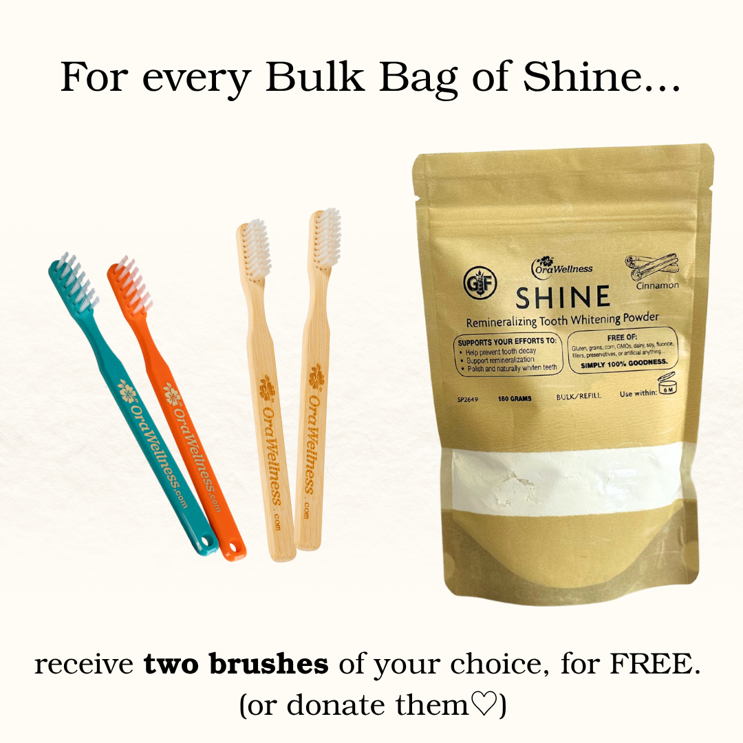 Mix Shine powder 50/50 with organic coconut oil (which is also great for oral health) to form a more mild-tasting paste to brush with.