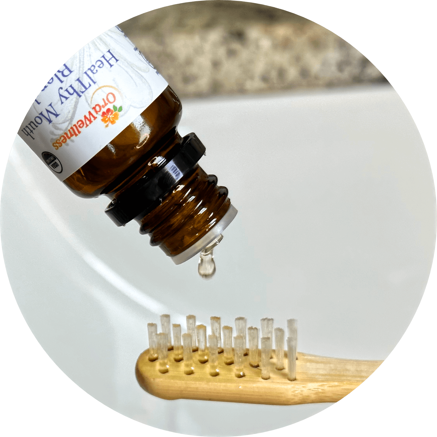 Drip 1 to 3 the drops onto a toothbrush for brushing, onto a clean finger for a gum massage or to supercharge your floss by coating the string with the Blend, into some water to use it as a mouthwash, or onto your spoonful of oil for oil pulling.